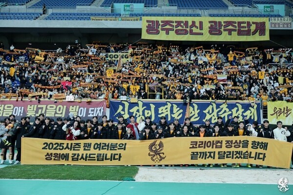 광주는 내달 6일 중립 구장인 서울월드컵경기장에서 전북현대와 2025 하나은행 코리아컵 결승전을 앞두고 있다.