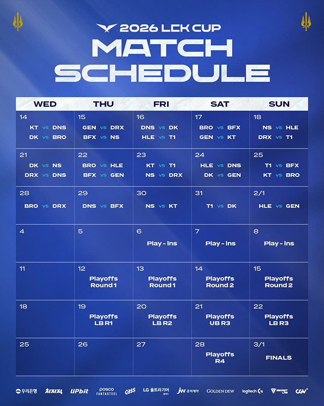 '리그 오브 레전드(LoL)' 이스포츠의 한국 프로 리그인 리그 오브 레전드 챔피언스 코리아(LCK)를 주최하는 라이엇 게임즈는 오는 14일(수)부터 한 달여 동안 서울 종로구 치지직 롤파크에 위치한 LCK 아레나에서 2026 LCK컵이 진행된다고 밝혔다.