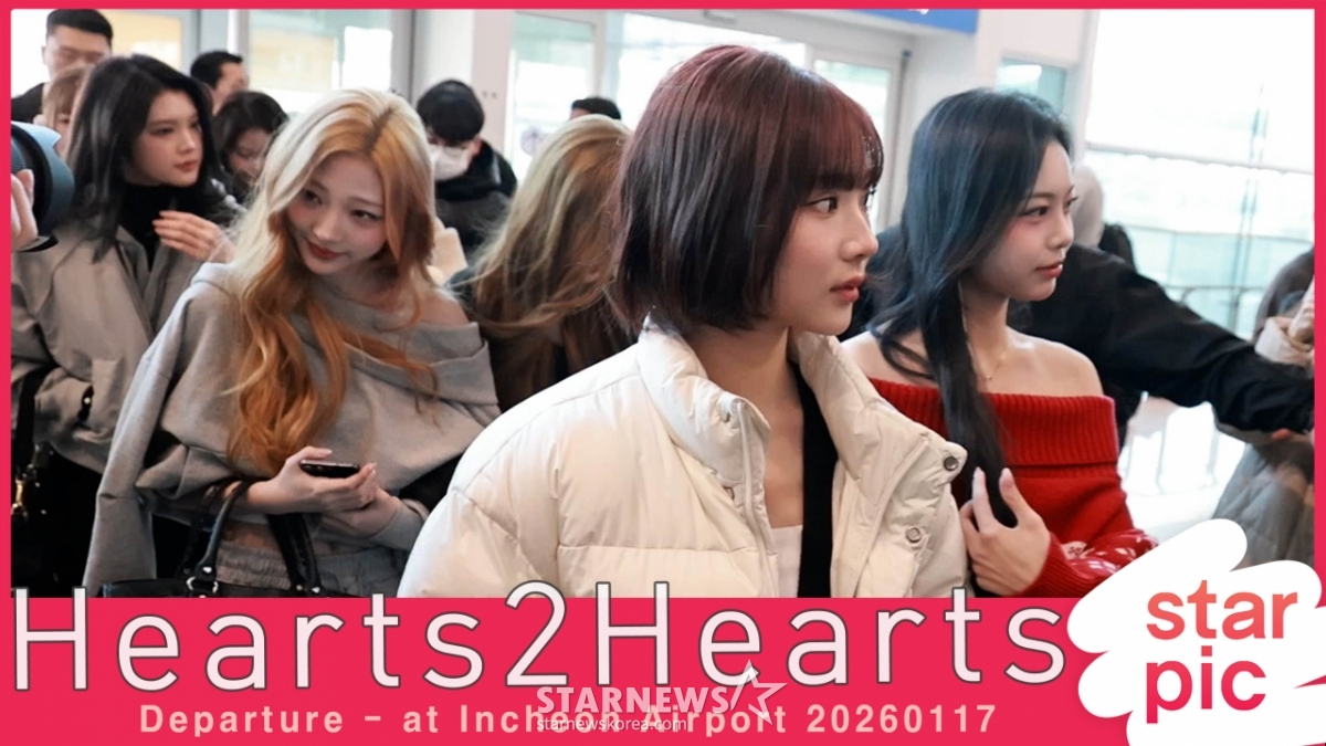 그룹 하츠투하츠(Hearts2Hearts) 카르멘, 지우, 유하, 스텔라, 주은, 에이나, 이안, 예온이 중국 상하이 일정 차 17일 오전 인천국제공항을 통해 출국하고 있다.